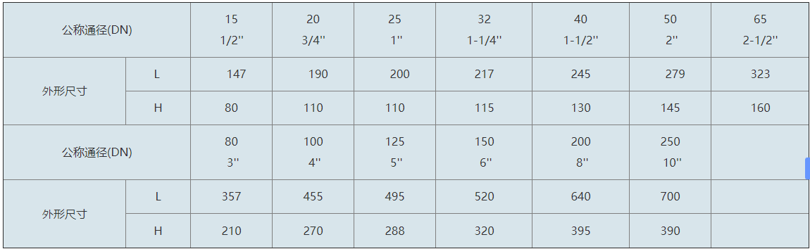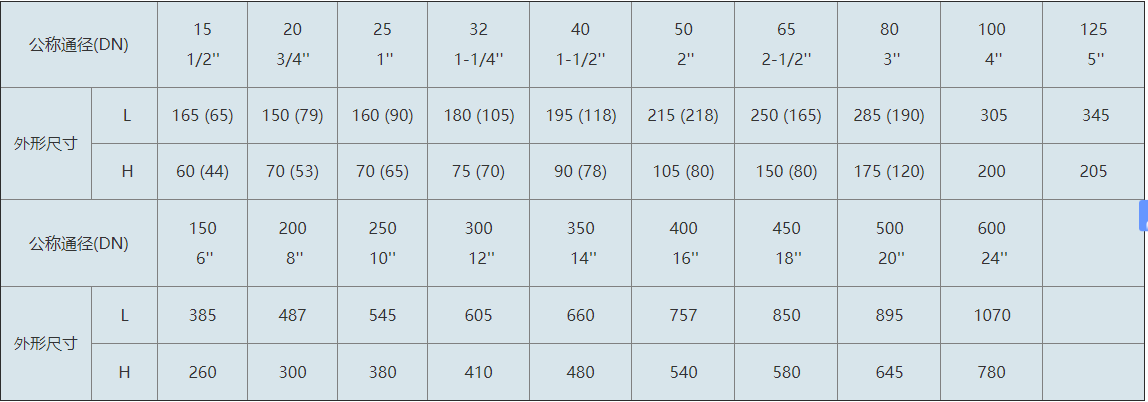 注:本尺寸表的數(shù)據(jù)適用于本廠0.25~2.5MPa、150LB壓力等級的Y型過濾器。括號中的數(shù)據(jù)為螺紋連接的過濾器。